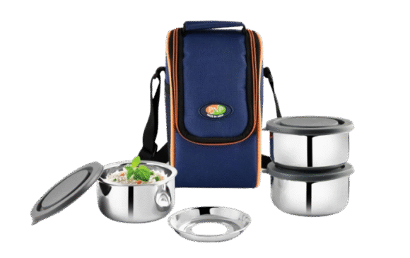 The Airtight Lock n Lock Stainless Steel Containers feature leak-proof design and come with a pouch that keeps food fresh and hot.